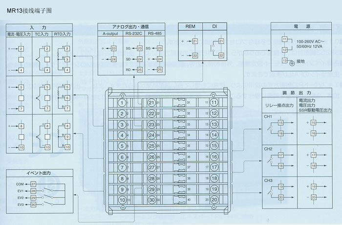 EV 1~ EV3 3组事件输出,接点容量:240VAC/1A阻性
